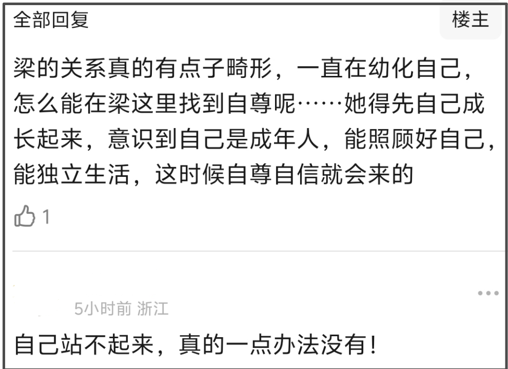 最后真心建议何美延虚心接受各方建议,不管未来要不要和梁淞离婚,作为三个女儿的妈妈,还是要以身作则,培养孩子自尊自立自强,言传身教很重要,不要把悲剧延续到下一代好吗?