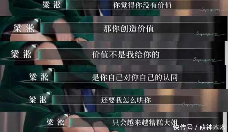 节目都快结束了,何美延还在缠着梁淞要求男方肯定自身价值,说白了,就是管别人要自尊。