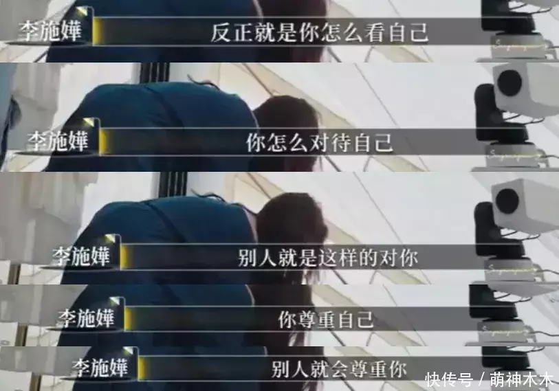 作为纯粹旁观者的李雪琴、徐志胜劝她去工作;选择离婚的返场嘉宾郭柯宇劝她考虑另外的路;同为《爱人5》嘉宾的李施嬅更是当着何美延的面,来了一句:“你怎么对待自己,别人就怎么对待你,只有尊重自己别人才会尊重你”。